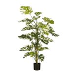 Realistische Monstera kunstplant met grote, glanzende bladeren en kenmerkende insnijdingen.