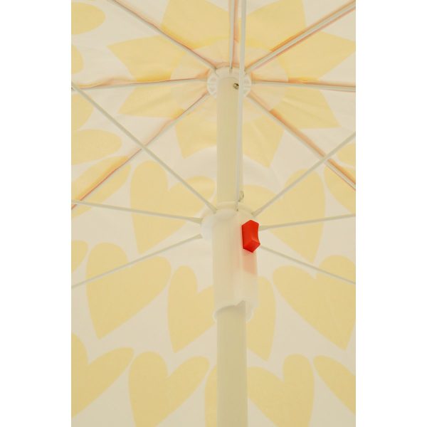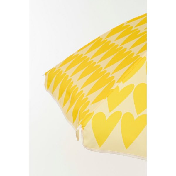 Geniet van een zorgeloze zomerdag met deze strandparasol van Mica Decorations. De stijlvolle parasol is voorzien van gele hartjes en biedt niet alleen schaduw, maar hij heeft ook een speels retro accent. Kortom: een stijlvolle én praktische must-have!