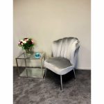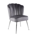 Deze prachtige Sara Grey met Chrome Frame heeft een prachtig schelp rugleuning en is geheel van velvet. Deze velvet stoel is een moderne luxueuze eyecatcher in uw interieur, een opvallende verschijning met een uniek design. De zachte zitkussen en de comfortabele rugleuning zorgen voor de perfecte zitpositie voor lange avonden aan tafel.